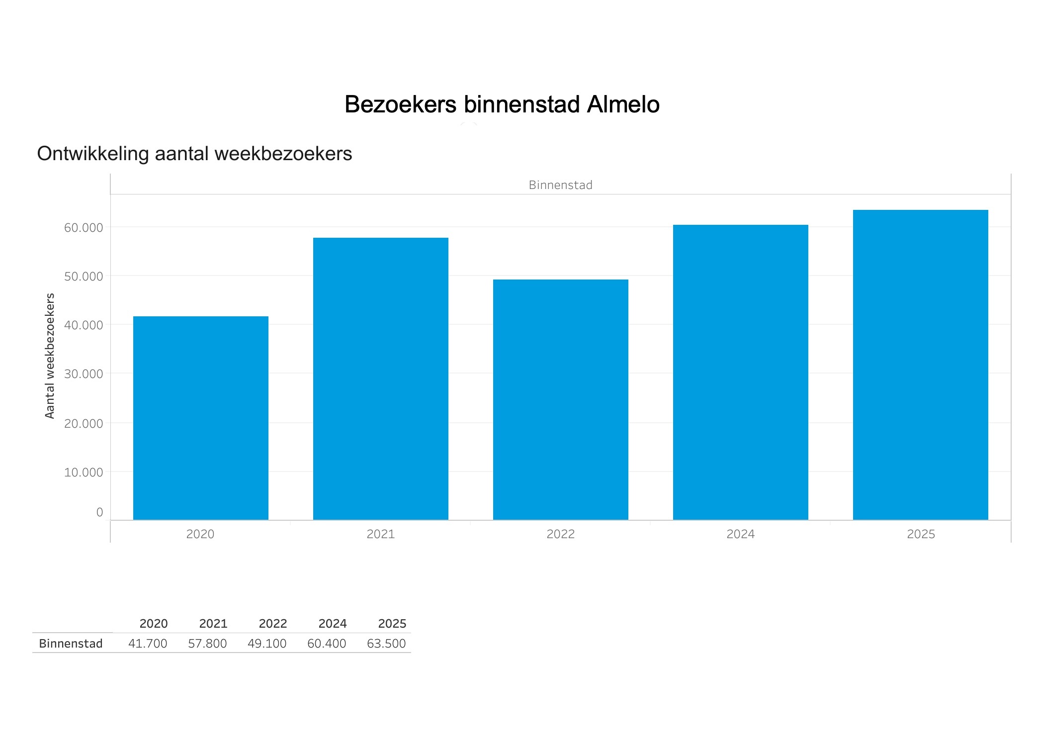 Opvallend in die cijfers is dat Enschede het aantal gemiddelde weekbezoekers ziet stijgen van 304.000 in 2024 naar 322.000 bezoekers in 2025. Ook Oldenzaal trekt meer mensen en ziet het aantal gemiddelde weekbezoekers stijgen van 115.971 in 2024 naar 128.716 bezoekers** in 2025. Het centrum van Almelo trekt ook meer shoppers: daar was het aantal bezoekers in 2024 gemiddeld nog 60.400 per week, in 2025 is dat gemiddeld 63.500 bezoekers.