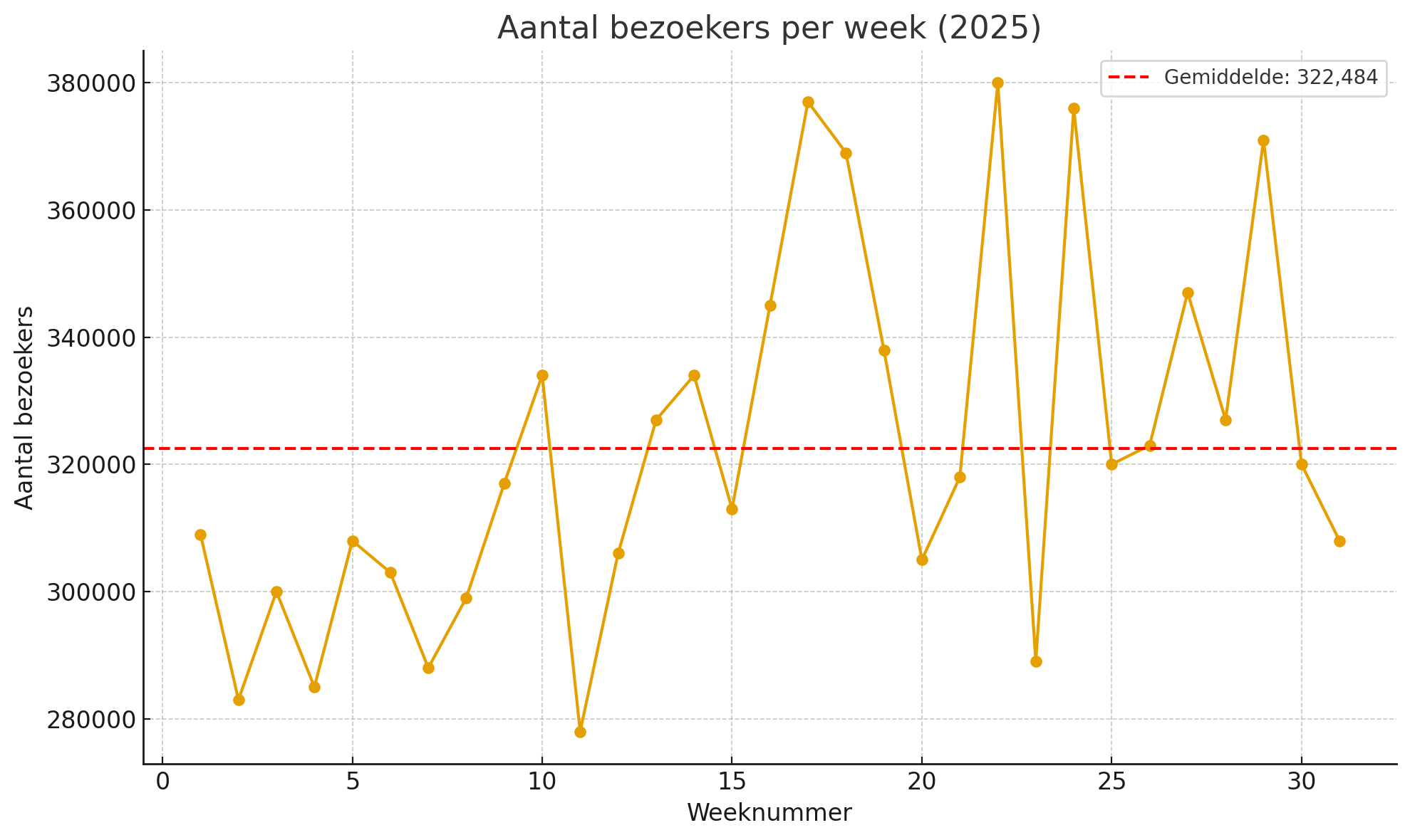 De zaterdag, traditioneel de drukste dag, zou volgens de cijfers van Locatus in 2025 een forse krimp laten zien: van gemiddeld 16.400 bezoekers in 2024 naar 11.500 bezoekers in 2025. Ook de woensdag krijgt een klap. Daar is sprake van een daling van 10.800 naar 7.800 bezoekers. Alleen de zondag houdt zich relatief beter staande, met een afname van 4.700 naar 3.900 bezoekers.